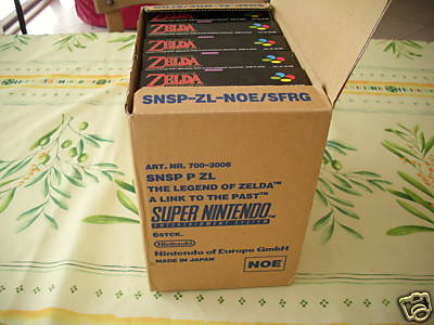 Box of six unopened copies of The Legend of Zelda: A Link to the Past.