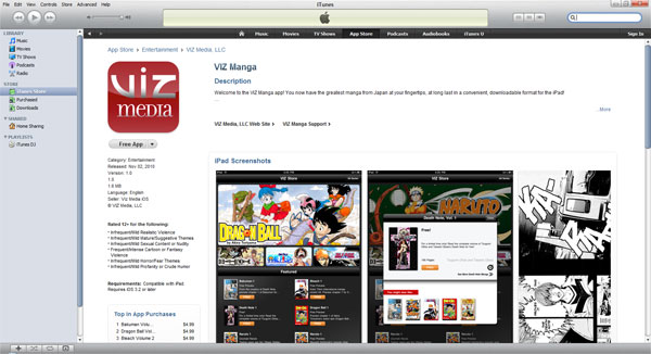 Viz Manga app as viewed in iTunes